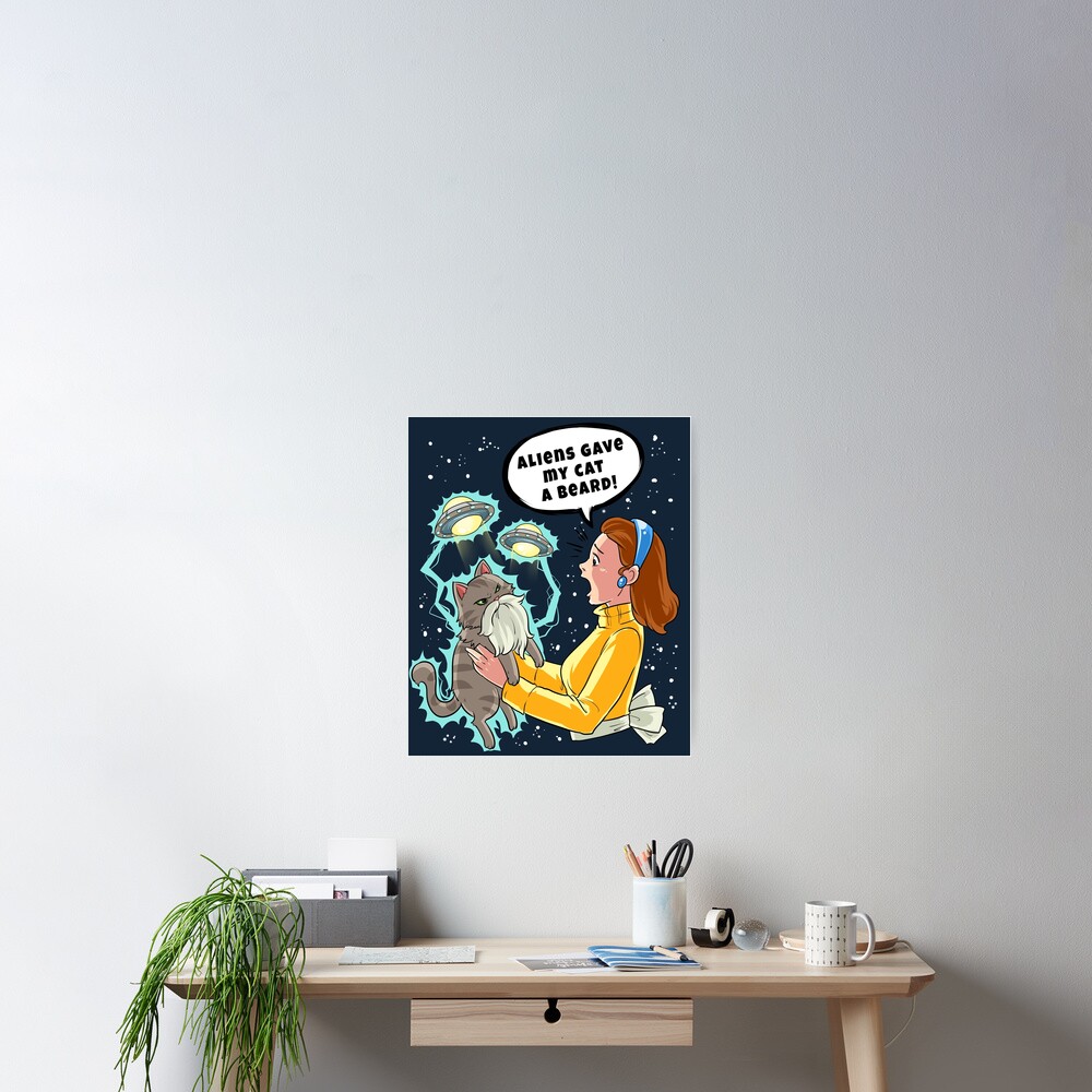 Aliens Gave My Cat A Beard Poster