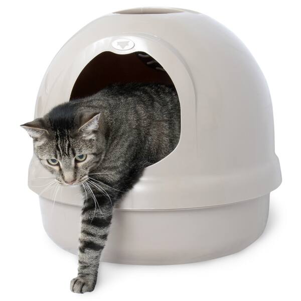 Booda the best dome cleanstep cat box brushed nickel covered litter dome new. 99 odor free and 50 bigger than average litter box. The petmate booda dome cleanstep cat litter box keeps modern homes litter free clean step dome box entrance wipes cats paws as they step for litter free floors non stick round plastic pan with no stubborn corners to trap litter handle on top of dome helps pet parents lift and place cover on the base. Available in a variety of pearlescent colors.
