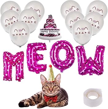 A cat birthday party with diy yarn ball pinata paper plate cat face craft a yarn ball topped cake mini tutu place cards pink tulip centerpieces bell embellished marshmallow pops. 45 out of 5 stars 41. Featuring a cutout of a cat on the top pink cat favor boxes are a perfect way to send off friends and family. Bingpet 14 pcs cat birthday party supplies with cat birthday hat cat chew toys letter balloons blue latex balloons happy birthday banner and blue ribbon for kitty kitten theme party decoration.