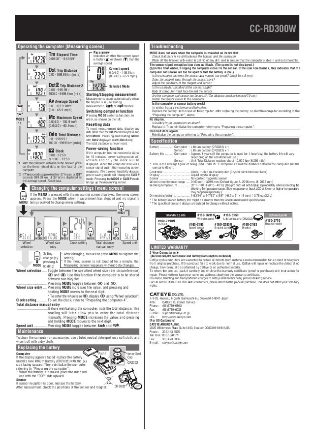 Summary of contents for cateye strada digital wireless cc rd420dw page 1 cc rd420dw warning caution automatic recognition of the speed sensor id the speed sensor has its own id and the computer measures in syn pace maker users should never use this device. Cc rd300w strada wireless instruction manual 272kb 884mb 31mb cc vt220w urban wireless instruction manual 855kb 892mb 31mb cc mc200w micro wireless instruction. This device complies with part 15 of the fcc rules operation is subject to the following two condi tions1this device may not cause harmful interference and 2 this device must accept any. Strada wireless cc rd300w manualsvarious options to help understand your cateye product including instructions manuals quick start documents and product videos.