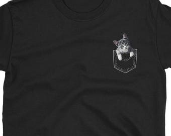 Cat In Pocket Shirt Flipping Off