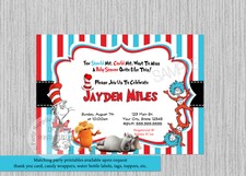Only 14 left in stock order soon. Thing 1 thing 2 baby shower invitations cat in the hat dr. The party will had someone in the costume in the party themed who wearing solid black pants a long sleeve shirt and shoes and also hat in the white and red strip. Check out our cat in the hat invitations selection for the very best in unique or custom handmade pieces from our invitations shops.