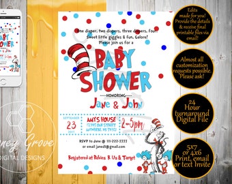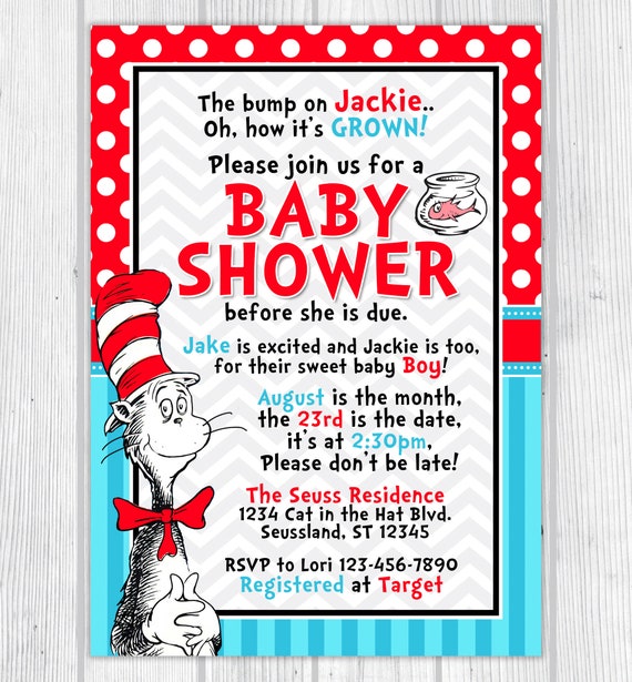 5 out of 5 stars 167 167 reviews 1000 free shipping favorite add to oh the places baby shower invitation pastel colors rainbow hot air balloon printable. Cat in the hat baby shower invitation dr seuss baby shower theme with cat in the hat thing 1 thing 2 and baby banner illustrationslets celebrate the new baby with a baby seuss baby shower. Free shipping on orders over 25 shipped by amazon. Here is an adorable selection of dr.