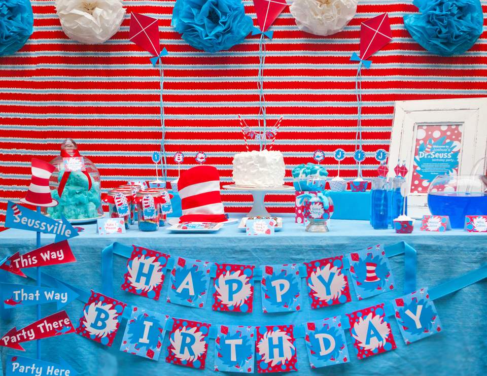 Did you scroll all this way to get facts about cat in the hat birthday. The cat is out to play and bringing loads of fun and mischief with him in this fabulous cat in the hat themed birthday party submitted by smita bhakta of the party wall out of san antonio texas. Seuss party supplies are your answer for a rainy day sunny day or maybe just your birth day this year. Happy birthday to you.