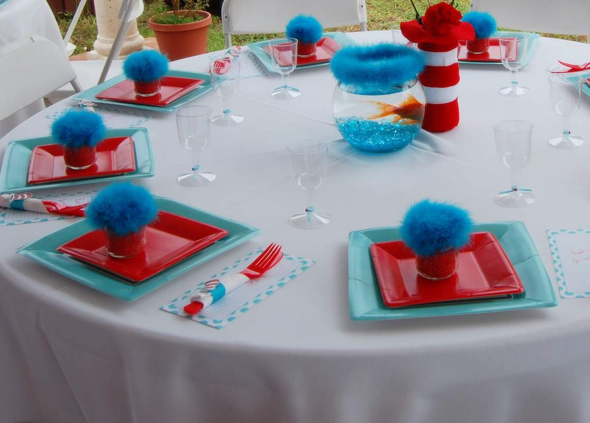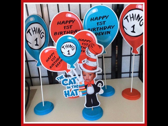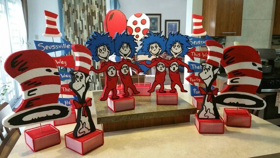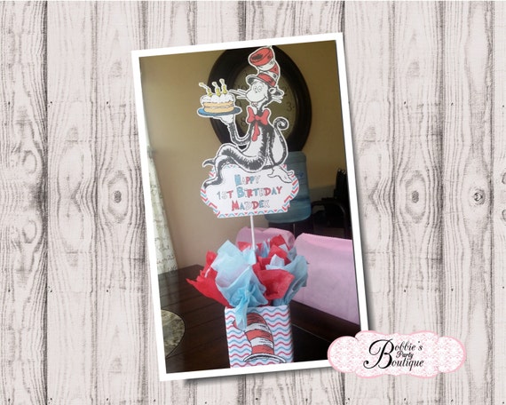 Airplane baby shower decorationsdr seuss cat in the hat party decor 14pcs blue white red tissue paper fans for circus carnival decorationsairplane birthday party2020 nurse graduation party supplies. 50 out of 5 stars 3. There are 96 cat in the hat centerpiece for sale on etsy and they cost 1246 on average. Anyways here i am and im going to tell you how i did this gorgeous centerpiece for my sons birthday.
