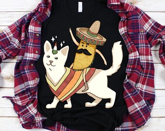 Looked up cat riding a unicorn in top hat and was not disappointed. Apottwal mp 0003 funny cute cat dressed as rambo with gun riding a glowing red eyes fire breathing unicorn mouse pad 48 out of 5 stars 349 799 7. Whether you are purchasing for a friend relative or loved one you can be sure to put a smile on their face. Cat riding unicorn shirt cat unicorn shirt cat shirt rainbow unicorn unicorn cat shirt cat shirt unicorn shirt for men gift.