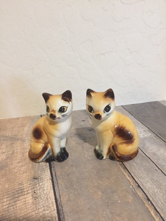 Cat salt pepper shakers. Cat salt shakers and cat pepper shakers at this one museum. With traditional salt and pepper shakers the salt has 1 2 shaker holes and the pepper has more. Vintage 1950s siamese cats tall neck floral detail salt and pepper shakers ceramic made in japan.