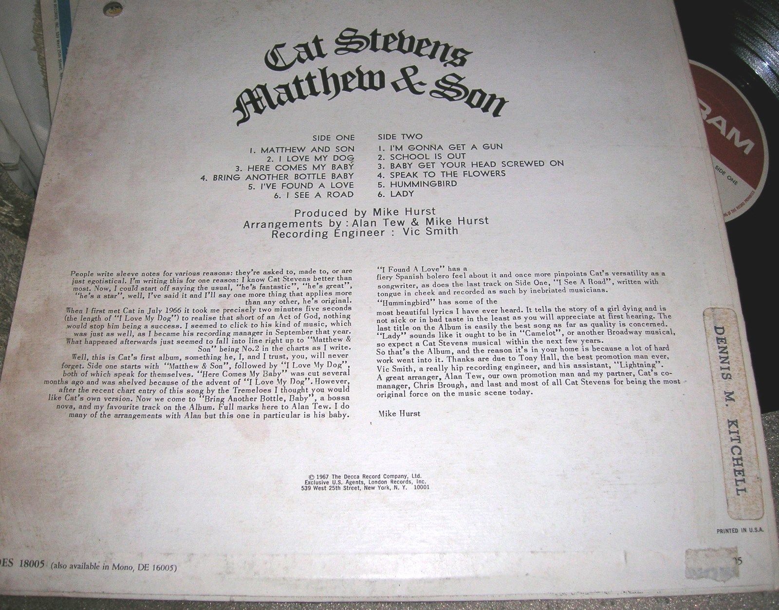 Cat stevens matthew son. And theyve been working all day all day all day. Actually stevens i love my dog launched the label in fine style by climbing to number 27 on the uk. Cat stevens matthew son was among the handful of releases that introduced decca records offbeat oriented but ultimately largely psychedelicprogressive deram label in england. Stevens soon released his first album matthew and son which featured the hits i love my dog here comes my baby and the title track which charted at no.