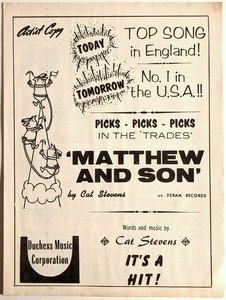 The song remains cat stevens highest charting single in the british isles reaching number 2 in the uk and number 3 in ireland in early 1967. 30 december 1966 matthew and son is the debut studio album by english singer songwriter cat stevens released in march 1967. Matthew and son is a single written composed and performed by cat stevens. 2 and further helped to boost his.
