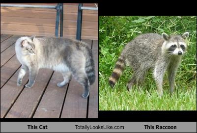 Cat that looks like a raccoon. Clearly shes a cat. Have stripedrings on the tail. What kind of cat has rings around its tail like a raccoon. A quick look suggests the ringtail cat is an adorable mix between a fox and a raccoon.