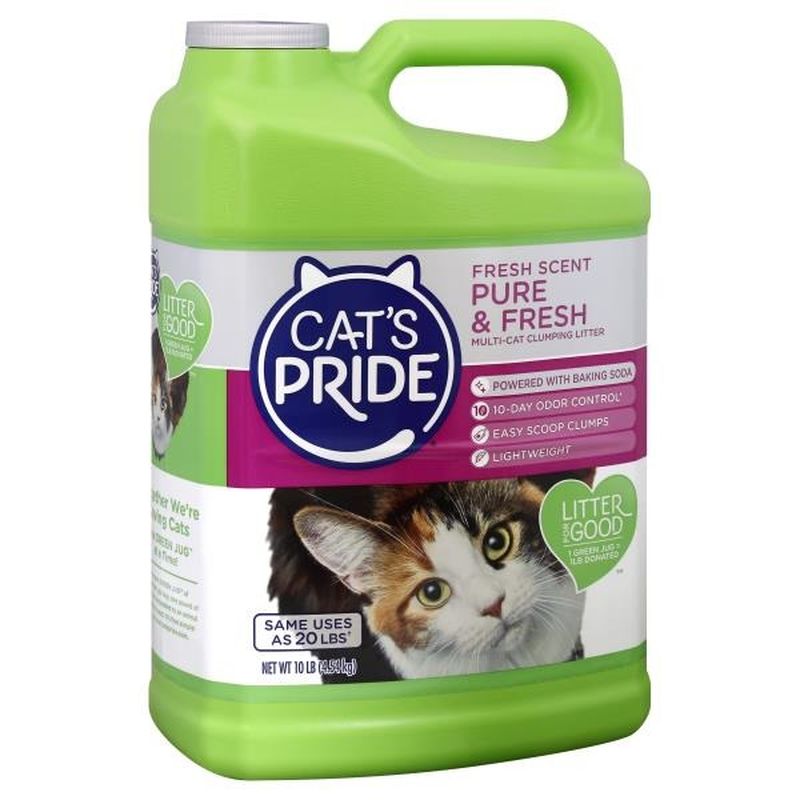 Silica is a natural occurring material found in all clay and sand. Low dust formula prevents litter from tracking. Cats pride pure fresh scented litter has advanced odor control technology powered with baking soda to destroy the toughest litter box odors. Two paws up for the new premium clumping litter thats up to 25 lighter than other heavier scoopable litters all while providing the same number of uses absorbs odor causing enzymes so your litter box stays fresher longer.