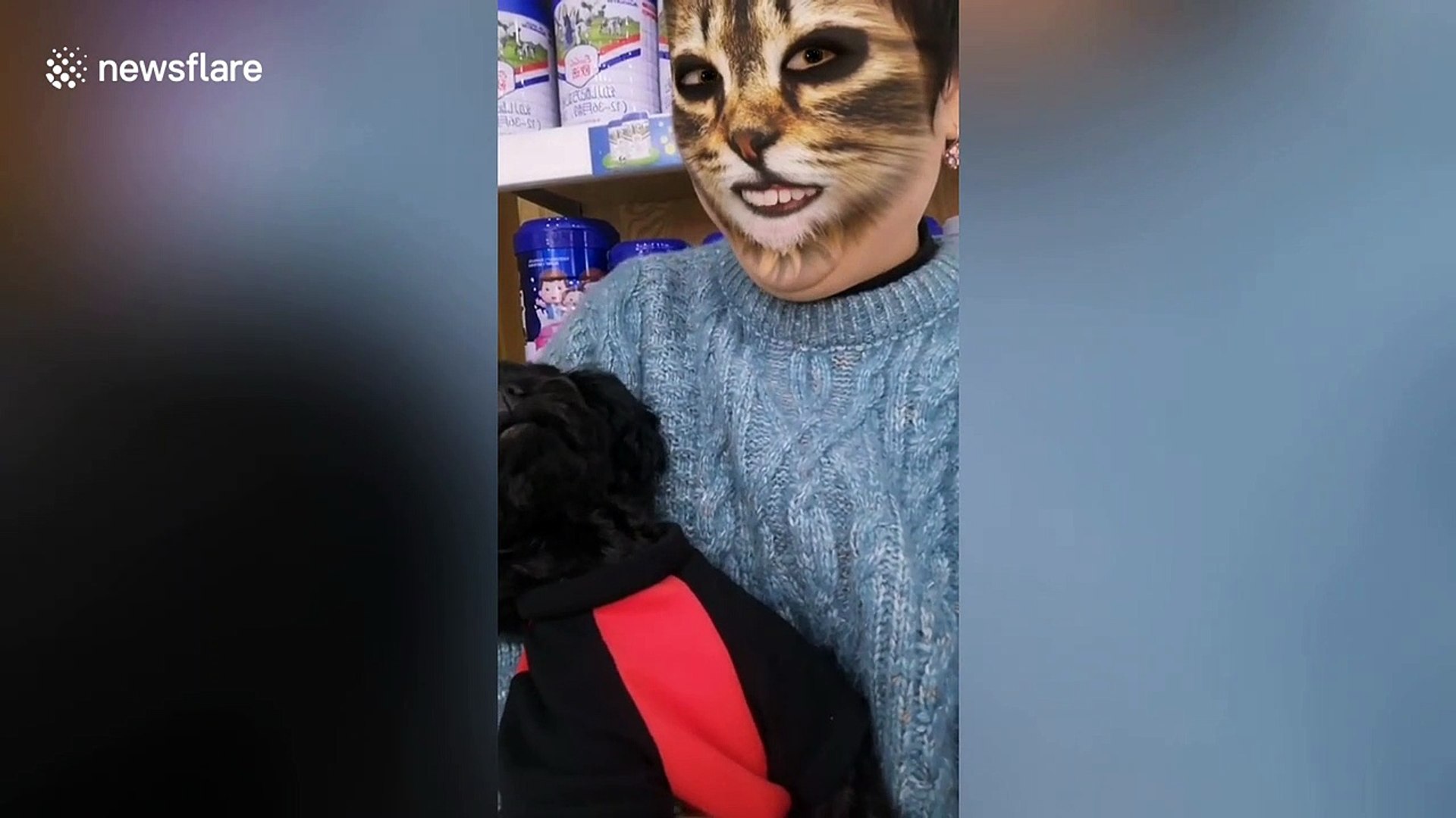 Thought this has been revealed as an fake. I didnt know cats recognized themselves in a mirror. Because the dog and cat are in complete shock. Cats hilarious reaction when they see cat filter on owners faces pets story video 2020 duration.