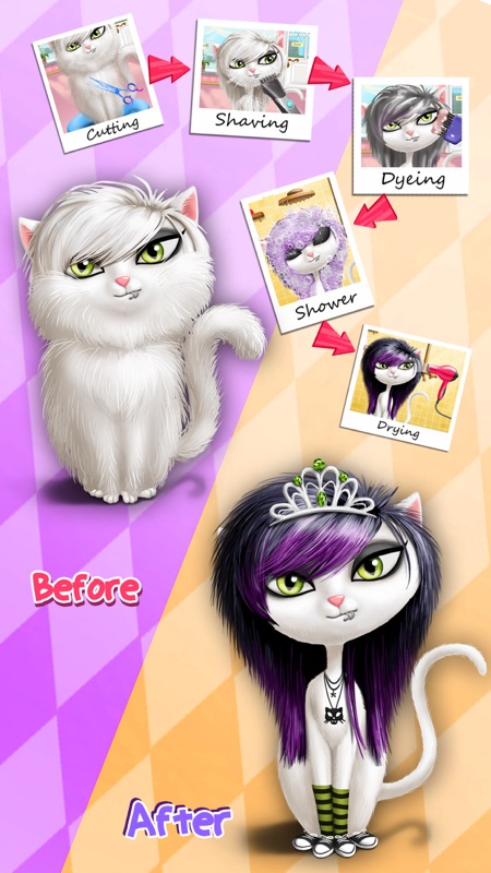 Pack your hairstyling tools and get ready for new virtual pet fashion makeovers and animal beauty salon adventures. Become a professional cat stylist and choose from tons of styling activities. These adorable cats need a hair makeover asap. Help your new pet friends express themselves through style with crazy haircuts beautiful makeup and fashionable outfits in.