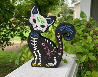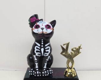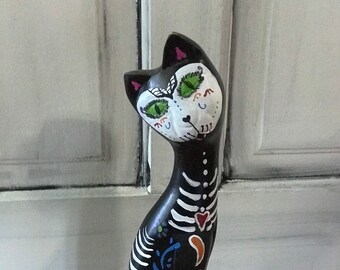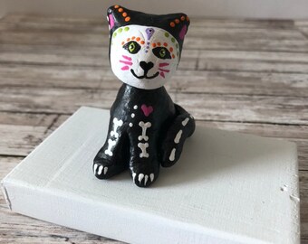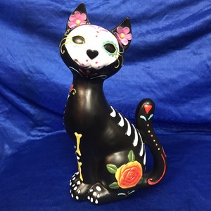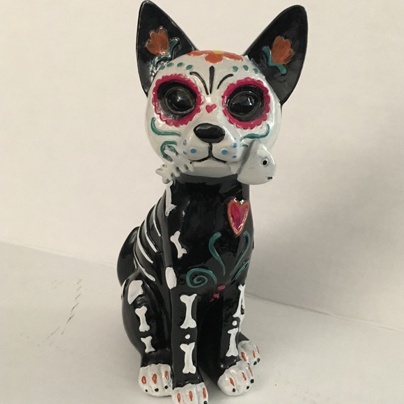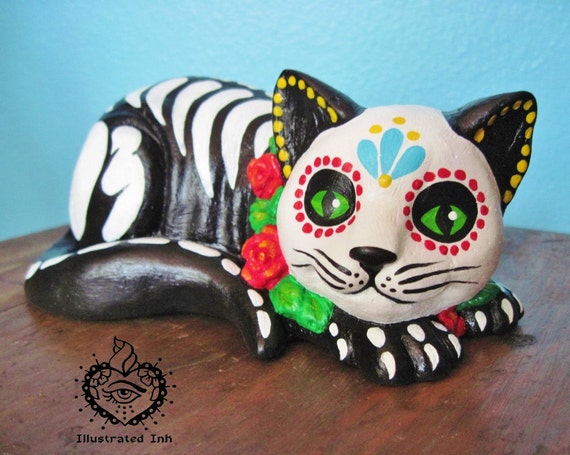 Day of the dead art in southern mexico the spirits of the dead come back to visit from noontime on october 31 through november 2. Day of the dead sugar skull cat this amazing sculpture is approximately 1125 tall 7 long and 55 deep. 1025 inches tall green and orange colored. This listing is for a hand painted day of the dead cat statue like the one pictured with detailed bones and dotted embellishments.