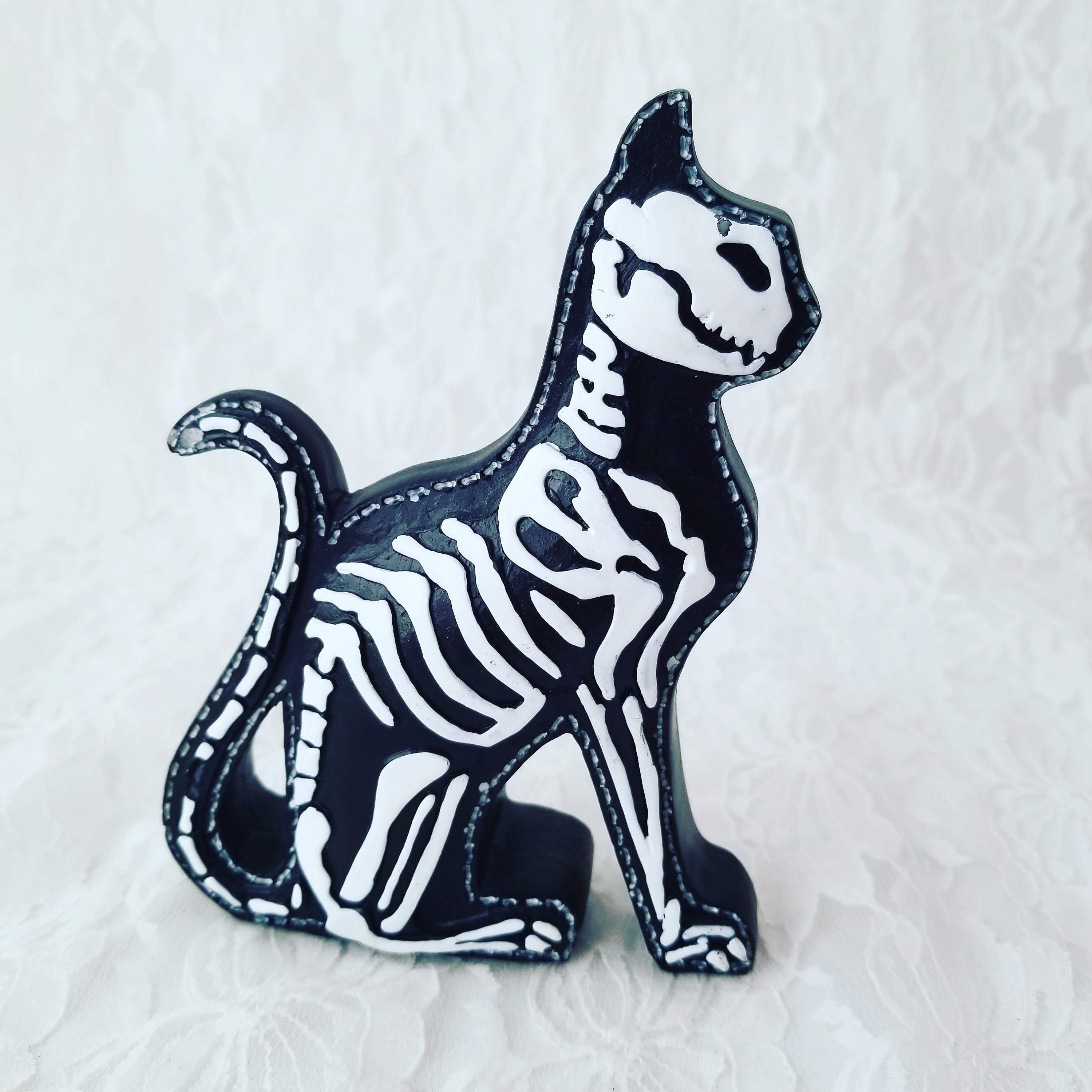 Day of the dead cat statue. Day of the dead cat skeleton kitty altar statue pet memorial custom by illustrated ink choose your own colors. Ebros gift day of the dead dod skeleton lady fiona with green cocktail gown figurine 125 tall high fashion diva and her skeletal pooch dog statue as ossuary macabre graveyard halloween decor 50 out of 5 stars 6. Day of the dead bone skeleton male cat statue halloween 3d x ray decor figurine. Free shipping on many items.