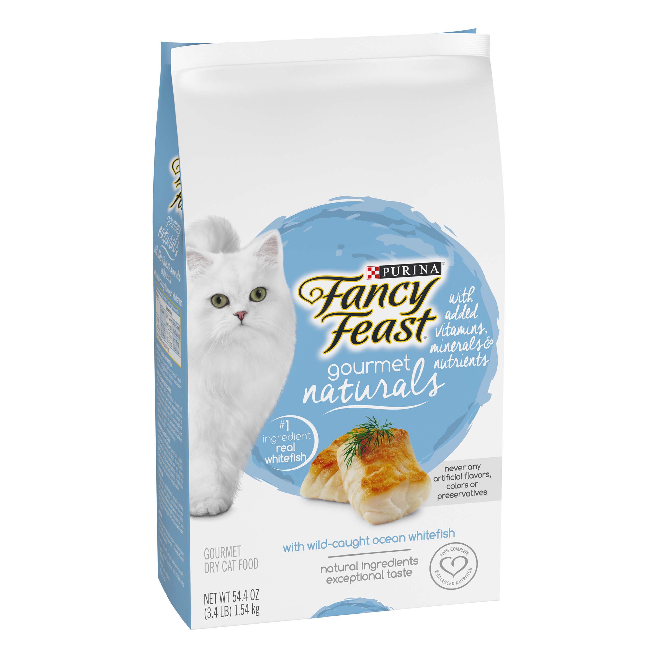 Bag purina fancy feast gourmet naturals with wild caught oceanfish plus vitamins minerals dry cat food ocean whitefish is the 1 ingredient natural plus vitamins and minerals never any artificial colors flavors or preservatives naturally. She can dig into the crunchy texture that cats crave while enjoying delicious flavors they adore. Every bite delivers exceptional taste and the satisfying crunch is sure to please your sophisticated cats discerning palate. Satisfy your cats cravings for gourmet meals with purina fancy feast gourmet dry cat food with savory chicken turkey.
