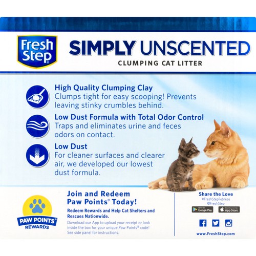 Fresh step unscented cat litter. This low tracking litter is 999 dust free. Fresh step multi cat simply unscented clumping cat litter is powerful for even the busiest litter boxes. Fight litter box odors with our easy to scoop. This review is based on reliable sources product specs and hundreds of customer reviews.