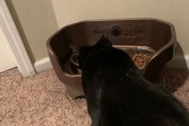 Put cat bowls on elevated spots like counters cat trees or the washing machine so theyre out of reach of nosy dogs. This will make your cat. A spray bottle can startle your dog so hell associate eating the cats food with an unpleasant but harmless experience and will not want to do it anymore. Regular cat houses work well to create a feeding station but they are usually on the small side.