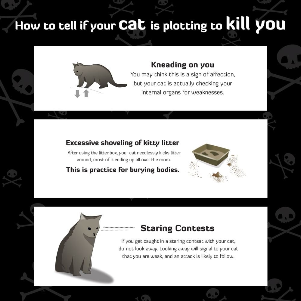 Your cat is actually checking your internal organs for weakness. Oats delivers a sidesplitting serving of cat humor in his new book how to tell if your cat is plotting to kill you. If your cat is kneading you thats not a sign of affection. Oats delivers a sidesplitting serving of cat comics in his new book how to tell if your cat is plotting to kill you.