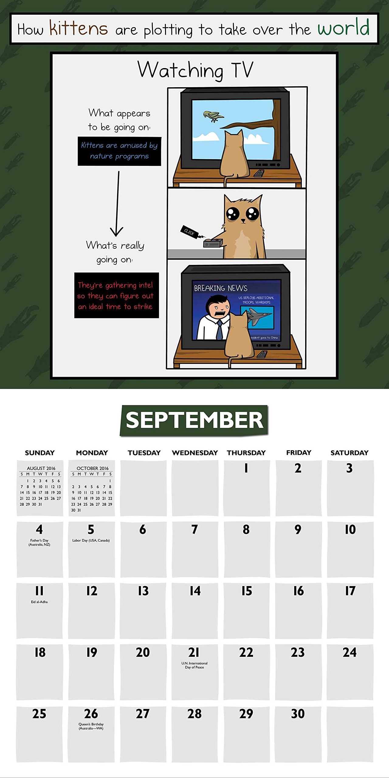 Others include how to tell if your cat thinks it is a mountain lion how to tell if your cat is a raging homosexual and there is a seven day episode comic of 2 cats called bob which is mostly set in the office of their workplace.
