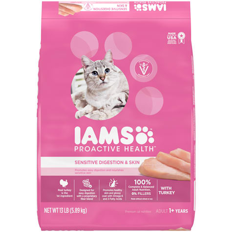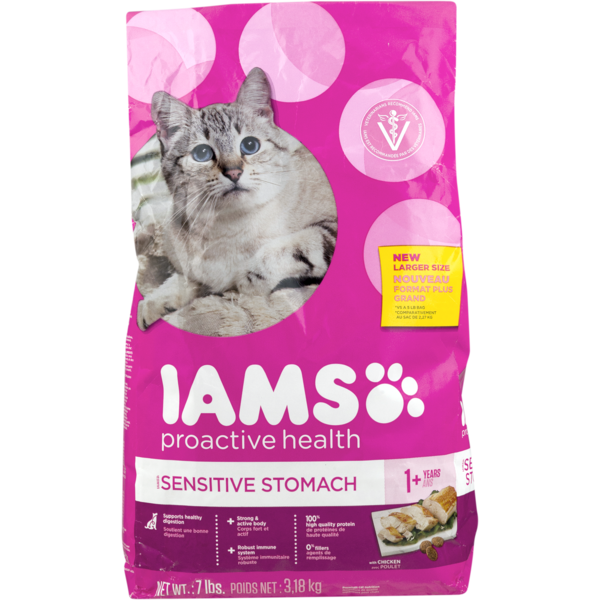 Iams cat food for sensitive stomachs. Designed to help with your cats sensitive digestion and skin. When introducing iams cat food gradually mix it with your cats current food over the course of 4 days. When you discover a formula which functions you could carry on serving that diet it is not merely for whenever the stomach of the kitty is annoyed. Because iams oral care complete cat food is complete and balanced for maintenance you do not need to add vitamin or mineral supplements.