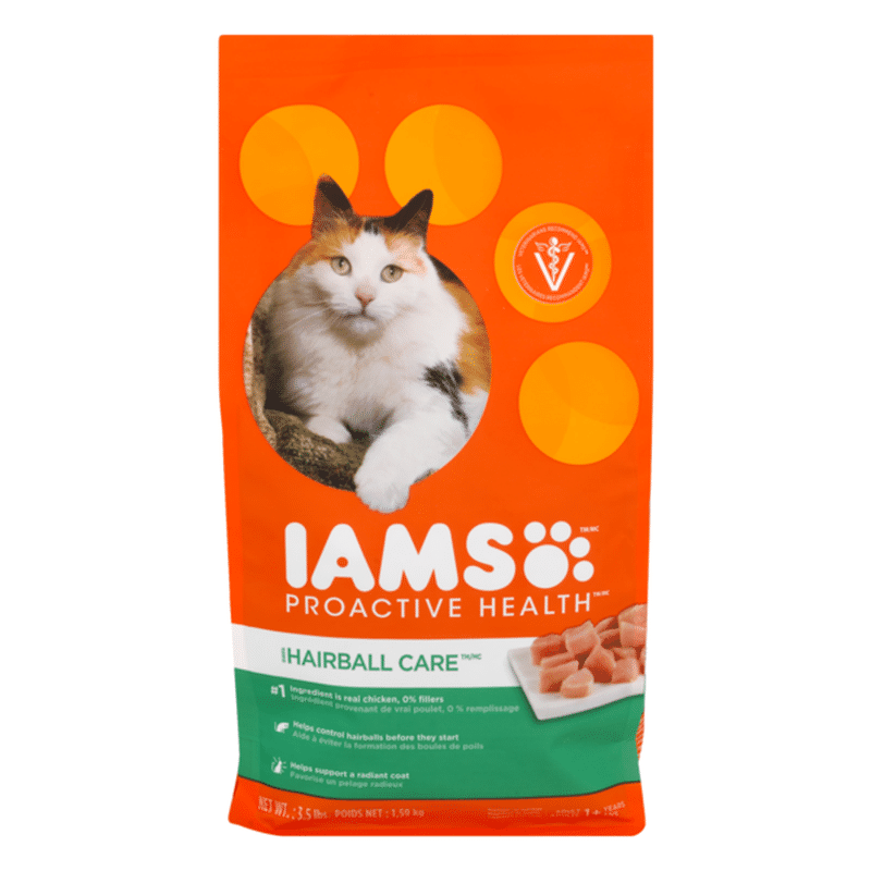 Iams proactive health cat food 22 lbs. Chicken is the number one ingredient in this cat kibble made for outdoor or indoor cat diets and its unique tailored fiber blend with prebiotics and beet pulp supports your cats ability to absorb nutrients to aid in the digestive process. Bag of iams proactive health healthy adult dry cat food with chicken chicken is the 1 ingredient in this protein rich cat food to help support strong muscles and to provide healthy energy for play with high quality protein and 0 fillers the adult cat food helps your cat maintain lean healthy muscles. 47 out of 5 stars 8. Contains one 1 22 pounds bag of iams proactive health adult indoor weight hairball care dry cat food with chicken turkey chicken is the 1 ingredient in this protein rich cat food to help support strong muscles and to provide healthy energy for play formulated with l carnitine to help your indoor cat lose weight or maintain a healthy weight.