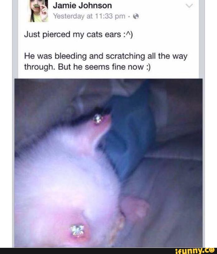 Join facebook to connect with jamie johnson and others you may know. Dear ee there is a picture being shared on fb of some idiot who has seemingly pierced her cats earsthe telecom carrier symbol in the top left corner is eeyou will need to investigate this. With ivanka trump georgina bloomberg si newhouse iv luke weil. A woman convicted of animal cruelty for marketing gothic kittens with ear and neck piercings has been sentenced to six months of house arrest.