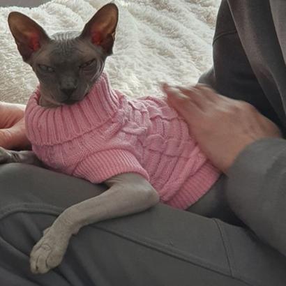 Love the sweater my cat loves it too.