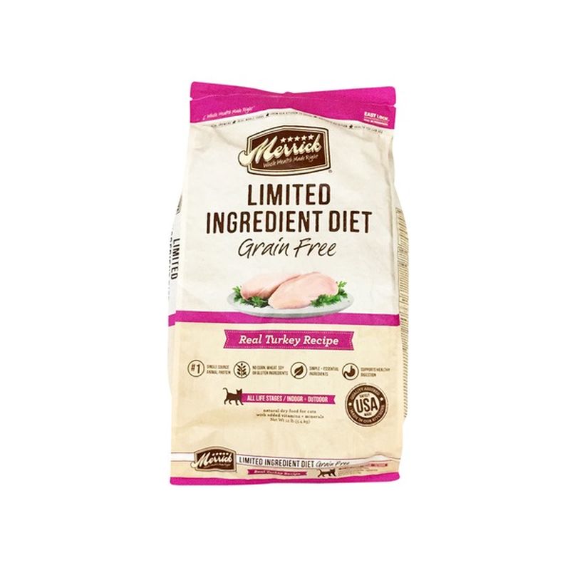 Merrick limited ingredient cat food turkey. Simple ingredient panel for cats with food sensitivities. Merrick limited ingredient diet grain free real turkey recipe cat food provides a quality 100 nutritionally complete and balanced diet for all life stages. Merrick cat food 46 out of 5 stars 108. The merrick 24 count is a single source animal protein recipe with real deboned turkey as the primary ingredient.