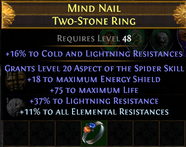 Aspect of the spider can inflict spiders web on enemies an additional time gain 15 20 energy shield for each enemy you hit which is affected by a spiders web 40 50 increased aspect of the spider debuff duration when the fires spilled out of the mountain the first of the night wove a net and was carried into the night on its hot winds. 43 52 requires level 50 39 dex 39 int grants level 20 aspect of the spider skill 120 170 increased evasion and energy shield. I have been using aspect of the spider on my magma orb totem build the extra defense is nice from the hinder anf the massive amount of extra damage from it is useful too. Aspect of the spider is found on fenumus weave fenumus weave carnal mitts quality.