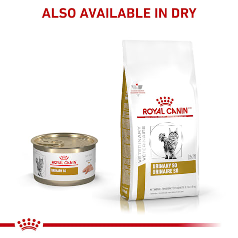 Royal canin veterinary diet feline urinary so calm canned cat food the benefits contains hydrolyzed milk protein and l tryptophan to help manage cats exhibiting fearful behaviors in stressful environments and social situations. Your vet may prescribe a nutritional product to support your cats urinary health if they are currently suffering from or have a history of flutd. Urinary so calm 3 oz can. Royal canin urinary so satiety calm loaf in sauce is a veterinary exclusive wet cat food to support urinary health and to help calm anxious behaviors in cats prone to weight gain or find a local retailer.