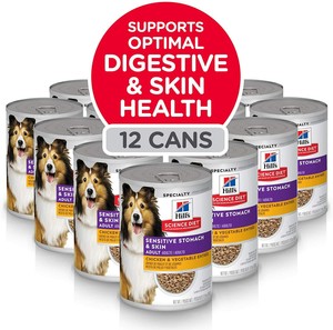 Hills science diet adult sensitive stomach skin tuna vegetable entre canned cat food provides precisely balanced nutrition for sensitive digestive systems and to improve skin and coat health. Designed entirely for cats with sensitive digestive system s this wet cat food provides a 100 complete nutritional diet. Hills science diet sensitive stomach skin dry cat food provides optimal digestive health while nourishing skin promoting a lustrous coat. Hills science diet adult sensitive stomach skin chicken vegetable entree canned cat food provides nutrition for optimal digestive skin health.