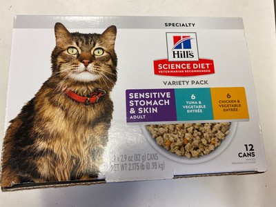 Hill S Science Diet Adult Sensitive Stomach Skin Canned Cat Food Variety Pack Tuna Vegetable And Chicken Vegetable 2 9 Oz 12 Pack Wet Cat Food Walmart Com Walmart Com