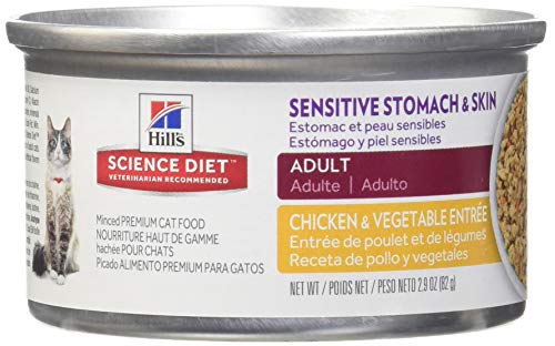 Science diet sensitive stomach cat canned. Including a blend of fatty acids that nourish the skin and coat plus an antioxidant blend of vitamins for a healthy immune system its all designed to be highly digestible and. High digestibility for optimal nutrient absorption easier stool pick up. Cater to your kittys needs with the hills science diet adult sensitive stomach skin chicken vegetable entree canned cat food. Natural fibers help promote easy stool cleanup while omega 6s and vitamin e nourish your adult cats skin and add luster to their fur.