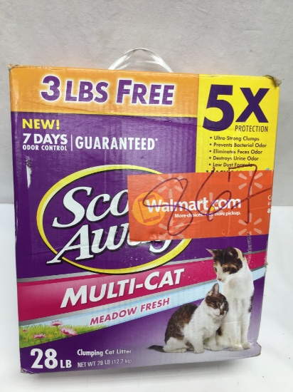 Scoop away multi cat meadow fresh scented cat litter is specially formulated to handle even the busiest litter box odors for 7 days guaranteed and leaves behind a light meadow fresh scent that isnt overpowering. Scoop away clumping scented cat litter is designed for powerful odor control to handle the most extreme litter box odors for 7 days guaranteed and leaves behind a light clean breeze scent that isnt overpowering. Remove clumps and solids daily and dispose in trash. For best results do not mix scoop away litter with non clumping cat litter.