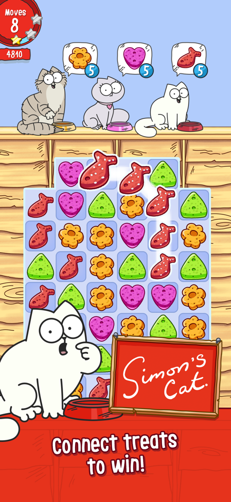 The board will be full of tiles representing the different treats that the cats will eat. Simons cat crunch time is a new puzzle game from strawdog based on the series simons cat. Join simons cat maisy chloe and jazz and a cast of determined kitties on a colourful adventure through some pawsome new places where treats are just waiting to be eaten. The devilish crows have swiped simons cats favourite tasty treats and only you can help him find them.