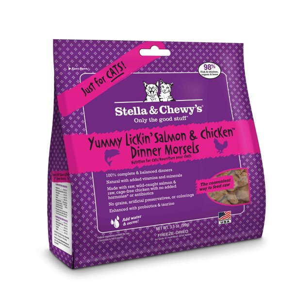 Stella chewy freeze dried raw yummy lickin salmon chicken dinner morsels grain free cat food 7 oz. Discover a new way to feed a cat with stella and chewys pate morsels. Free shipping on orders 49 and the best customer service. Read ratings and reviews so you can find the right stella chewys cat food for your pet.
