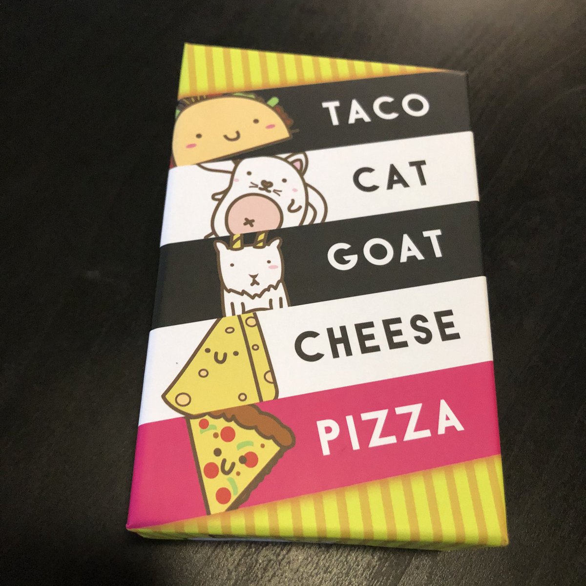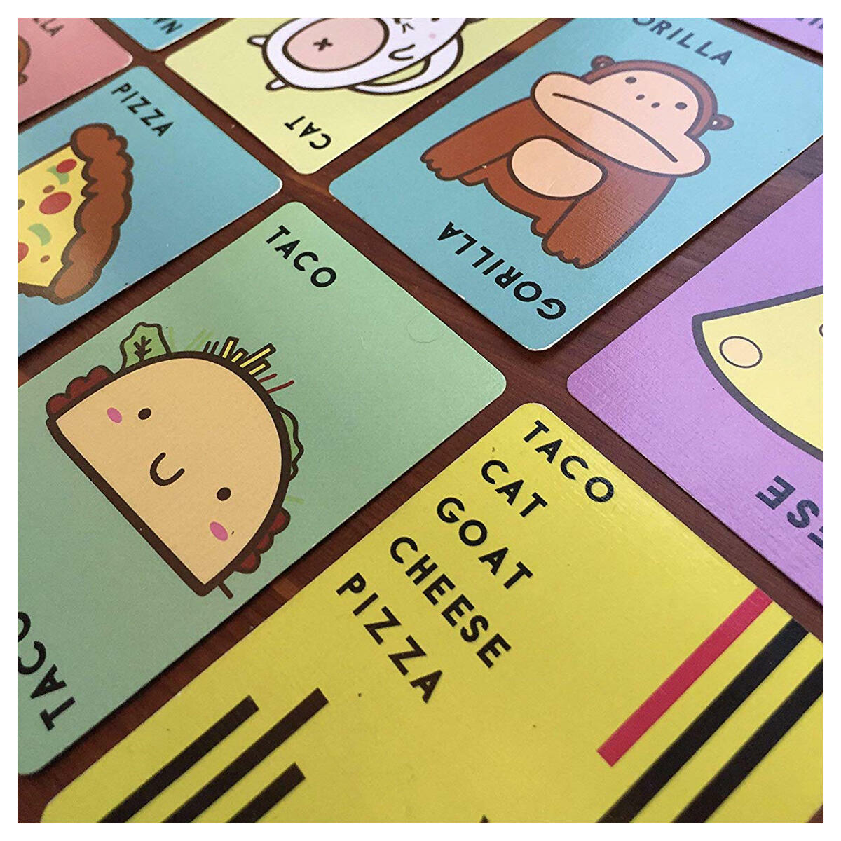 This item taco cat goat cheese pizza throw throw burrito by exploding kittens a dodgeball card game family friendly party games card games for adults teens kids 1 best seller. As soon as there is a match between a card and a spoken word race against each other to slap your hand on the central pile of cards. Taco cat goat cheese pizza is sure to bring some card slapping belly laughs to your tablethe best thing about it. Estimated delivery mar 2018.