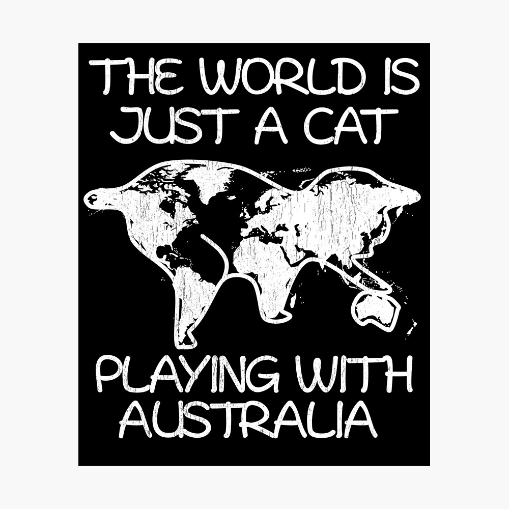 1999 free shipping get free shipping free 5 8 day shipping within the us. White sweatshirt is 5050 cotton blend t shirt is preshrunk 100 cotton. The world is a cat this map of the world clearly shows the silhouette of a cat playing with its australia shaped ball. First tweeted by wayne chu on may 17 it shows the world with a giant cat drawn over it with several continents making up the cats body and australia as a little toy the cat is playing with.