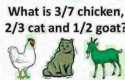 What is 37 chicken 23 cat and 12 goat. So its chi ca go. Only genius can solve this mindbender. 37th of chicken is chi. What is 37 chicken 23 cat and 24 goat.