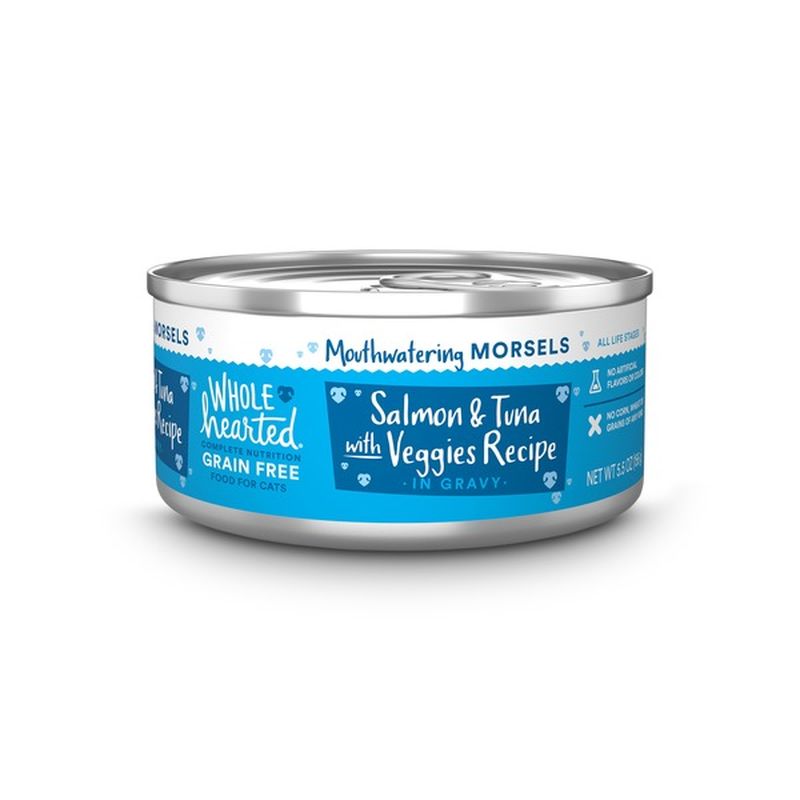 Salmon is rich in omega fatty acids for healthy skin and coat. Free shipping on orders 35. This wholehearted grain free dry cat food has real salmon as the first ingredient. Wholehearted grain free maritime delights flaked wet cat food variety pack for all life stages.